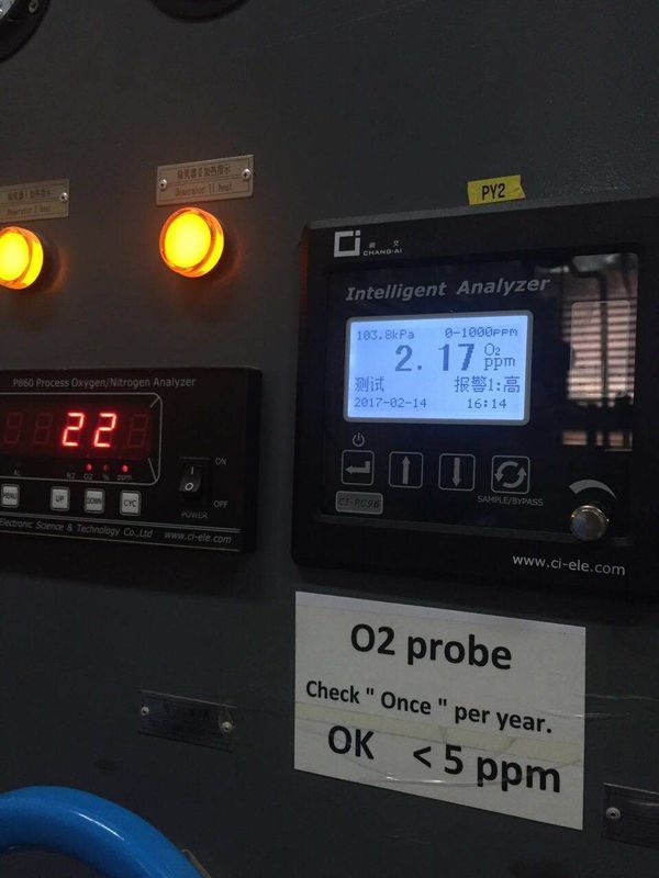 Должный к сеткам кислорода и азота различным, КМС под давлением адсорбируя пропуск кислорода через азот, системой ПЛК управлением пневматического клапана для того чтобы получить необходимую очищенность азота.